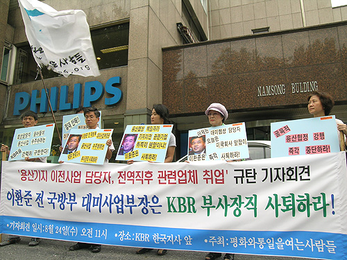 ÆòÈ¿Í ÅëÀÏÀ» ¿©´Â »ç¶÷µé(ÀÌÇÏ ÆòÅë»ç)Àº ¿À´Ã 8¿ù24ÀÏ 11½Ã ³²»ê¿¡ À§Ä¡ÇÑ ³²»êüÀ°°ü ºôµù(³²¼Ûºôµù) Kellogg Brown & Root Korea(ÀÌÇÏ KBR Çѱ¹Áö»ç) ¾Õ¿¡¼ ±ä±Þ±âÀÚȸ°ßÀ» ¿¾ú´Ù.