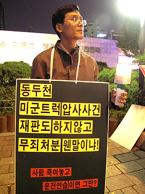 ÀÌ·± ¾ÈŸ±î¿î Çö½ÇÀ» ±×³É ³Ñ¾î°¡Áö´Â ¾ÊÀ» °ÍÀÌ´Ù. Á¦2ÀÇ ¿©Áß»ý »ç°ÇÀÌ ÀϾ´Âµ¥, Á¦3, Á¦4ÀÇ »ç°ÇÀÌ ÀϾÁö ¸»¶ó´Â ¹ýÀº ¾ø´Ù. ±×·¸±â¿¡ ¿ì¸®°¡ ÃкÒÀ» µé¾ú´Ù. ÀÛÀº ÃкÒÀÌ ¹Ì±¹ ¾Õ¿¡¸¸ ¼¸é Ç×»ó ¿òÃ÷¸®°í ÀÛ¾ÆÁö´Â Çѱ¹ Á¤ºÎ°¡ ±¹¹ÎµéÀÇ ÈûÀ» ¹Ï°í ´ç´çÈ÷ ¿À¸¸ÇÑ ¹Ì±ºÀÇ ÇàÅ¿¡ ¸Â¼ ½Î¿ï ³¯À» ¾Õ´ç±â¸®¶ó ¹Ï°í ½Í´Ù.