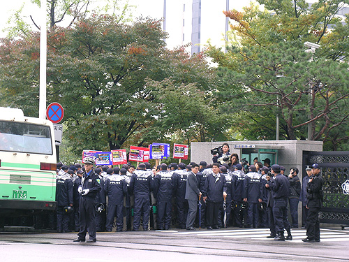 ¿ÜÅëºÎ Á¤¹®¾Õ¿¡¼ ±ÔźÁýȸ°¡ °íÂøµÈ »óÅ·Π¿¸®°í ÀÖ´Â °¡¿îµ¥, Á¤ºÎÁ¾ÇÕû»ç Á¤¹® ¹æÇâ¿¡¼µµ ±â½À 1ÀνÃÀ§°¡ ÁøÇàµÇ¾ú´Ù. ±×·¯³ª °æÂûÀº 1ÀνÃÀ§¿¡ µé¾î°¡ÀÚ¸¶ÀÚ "¿òÁ÷ÀÌÁö ¸øÇϵµ·Ï °íÂøÇ϶ó"¸é¼ ¹æÆÐ·Î 1ÀνÃÀ§ÀÚ¸¦ ¹Ð¾îºÙÀÌ°í ¶ÇÇÑ »çÁøÃÔ¿µµµ ¹æÇØÇÏ´Â µî °úÀ×´ëÀÀÀÇ ±ØÄ¡¸¦ º¸¿©ÁÖ¾ú´Ù.