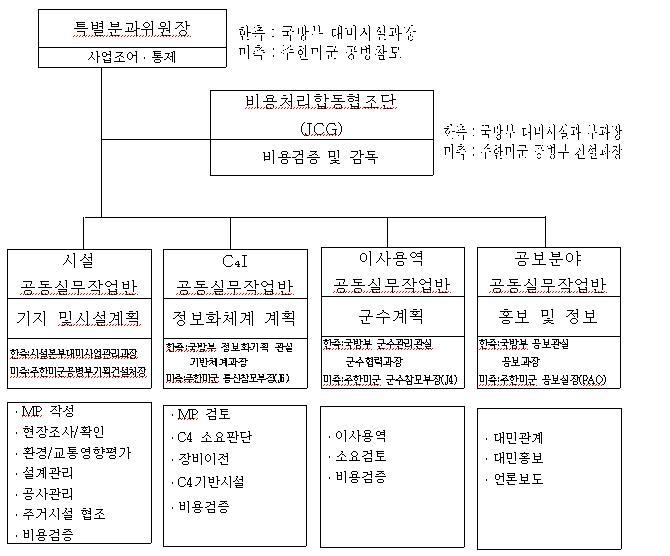 ³ª. ´ëÇѹα¹Àº ¿ÏÀüÇÏ°í »ç¿ë°¡´ÉÇÑ ½Ã¼³ ¹× ±â¹Ý½Ã¼³ÀDZâȹ, °èȹ, ¼³°è ¹× °Ç¼³À» À§ÇÏ¿© ÇÑ․¹Ì°£¿¡ ÇÕÀÇÇÑ ºñ¿ëÀ» ºÎ´ãÇÑ´Ù. »ç¾÷°ü¸®´ÜÀº ÁÖÇѹ̱º »ç·ÉºÎ¿Í Çѱ¹ ±¹¹æºÎ¿¡ °¢ »ç¾÷ÀÇ ¿¹»ê»ç¿ë ¸í¼¼, Àü(îñ) ±â°£ÀÇ ÃÑ ÁöÃâ¾× ¹× ÇöÀç±îÁöÀÇ ÃÑ ÁöÃâ³»¿ªÀÌ Æ÷ÇÔµÈ ºÐ±âº° º¸°í¼¸¦ Á¦ÃâÇØ¾ß ÇÑ´Ù. ºÐ±âº¸°í¼ÀÇ ¾ç½ÄÀº ºñ¿ëó¸®ÇÕµ¿ÇùÁ¶´Ü¿¡ ÀÇÇØ °áÁ¤µÈ´Ù. ½ÇÁ¦ ºñ¿ëÀº ¾çÃø °øµ¿½Ç¹«ÀÛ¾÷¹ÝÀÌ °ËÅäÇÏ°í Æ¯º°ºÐ°úÀ§¿øÀå¿¡ ÀÇÇØ¼ ÃÖÁ¾ ½ÂÀεȴÙ.