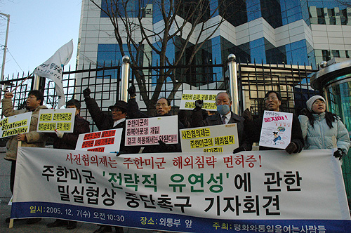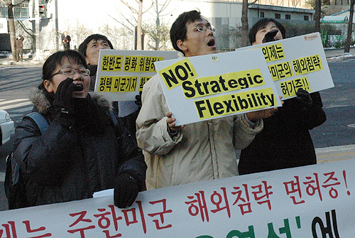 ±âÀÚȸ°ß ÈÄ Âü°¡ÀÚµéÀº ¡®Çѹݵµ ÆòÈ ÆÄ±«ÇÏ°í ±¹¹ÎÀÇ Àڱ⠰áÁ¤±Ç ºÀ¼âÇÏ´Â ÁÖÇѹ̱º 'Àü·«Àû À¯¿¬¼º'¿¡ °üÇÑ ¹Ð½ÇÇù»óÀ» Áï°¢ Áß´Ü ÇϽʽÿÀ !¡¯¶ó´Â ³»¿ëÀÇ ¡®¹Ý±â¹® Àå°ü¿¡°Ô º¸³»´Â Ç×ÀǼÇÑ'À» ¿Ü±³Åë»óºÎ¿¡ Àü´ÞÇÏ¿´´Ù.