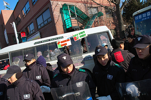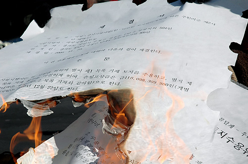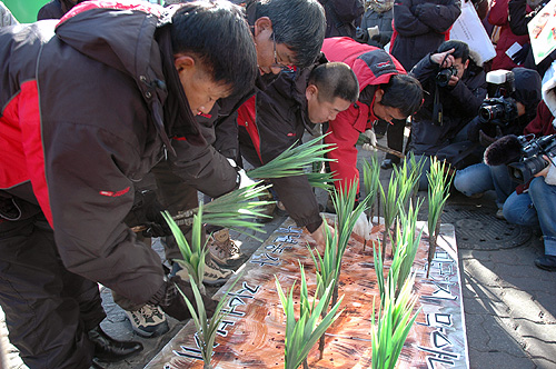 °á¿¬ÇÑ ¸¶À½À¸·Î ÆØ¼ºÁö¿ª ÁֹεéÀÌ ¼¿ï·Î ¿Ã¶ó¿Ô´Ù. ¶¥À» »©¾Ñ±æ À§Çè¿¡ óÇÑ ÁֹεéÀÌ »îÀÇ ÅÍÀüÀ» Áö۱â À§ÇØ °Á¦¼ö¿ë öȸ¸¦ ¿ä±¸ÇÏ´Â ±âÀÚȸ°ßÀ» ¿±â À§ÇÔÀÌ´Ù. ±×·¯³ª ÁֹεéÀ» ¸ÂÀÌÇÑ °ÍÀº ³ó¹ÎÀ» Á×ÀÎ °æÂûÀÇ ¹æÆÐ¿´´Ù. Â÷·®À» °íÂøÇÑ °æÂûÀº ÁֹεéÀ» Â÷¿¡¼ ³»¸®Áöµµ ¸øÇÏ°Ô ÇßÀ¸¸ç ±âÀÚȸ°ß Àå¼Ò¸¦ ÁöÁ¤ÇÏ´Â ¿À¸¸ÇÔÀ» º¸¿´´Ù. ½Ç¶ûÀÌ ³¡¿¡ Áֹεé°ú ½Ã¹Î•»çȸ´Üü ȸ¿øµéÀº ¡®°Á¦ ÅäÁö¼ö¿ë °³½ÃÀÏ¿¡ ÁîÀ½ÇÑ Ã»¿Í´ë ¾Õ ±âÀÚȸ°ß¡¯À» ÁøÇàÇß´Ù.