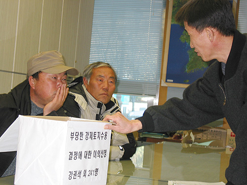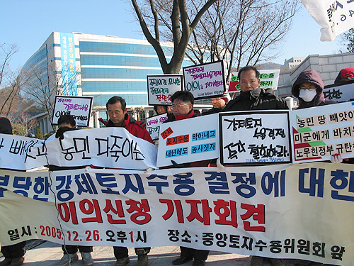 12¿ù26ÀÏ ¿ÀÈÄ1½Ã Áß¾ÓÅäÁö¼ö¿ëÀ§¿øÈ¸°¡ ÀÖ´Â ÅäÁö°ø»ç º»»ç ¾Õ¿¡¼´Â ¹Ì±º±âÁöÈ®Àå¹Ý´ëÆØ¼º´ëÃ¥À§ÀÇ ÁÖÃÖ·Î ºÎ´çÇÑ °Á¦ÅäÁö¼ö¿ë °áÁ¤¿¡ ´ëÇÑ ÀÌÀǽÅû ±âÀÚȸ°ßÀÌ ¿·È´Ù. Áß¾ÓÅäÁö¼ö¿ëÀ§¿øÈ¸´Â Áö³ 11¿ù23ÀÏ ÇöÁö Áֹεé°ú ¼ö¸¹Àº ±¹¹ÎµéÀÇ ¹Ý´ë¿¡µµ ºÒ±¸ÇÏ°í ±¹¹æºÎÀÇ ¿ä±¸¸¦ ¹Þ¾Æµé¿© °Á¦ÅäÁö¼ö¿ëÀ» °áÁ¤Çѹ٠ÀÖ´Ù.