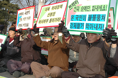 10ÀÏ ¿ÀÈÄ 2½Ã, ¿ÃÇØ ù ¹Ý¹Ì¿¬´ëÁýȸ°¡ ¿·È´Ù. ³¯ÀÌ Ç®·È´Ù°í ÇÏÁö¸¸ ¿©ÀüÈ÷ Ãß¿î ±¤È¹® ¿¸°½Ã¹Î°ø¿ø¿¡ ¸ðÀÎ 60¿©¸íÀÇ Âü°¡ÀÚµéÀº Áö³ÇØ 10¿ù ºÎÀÓÇÏÀÚ¸¶ÀÚ ºÏÀ» '¹üÁËÁ¤±Ç'À̶ó°í ÁöĪÇÏ°í ³²ºÏ°æÇù¿¡ °£¼·ÇÏ´Â µî ³ë°ñÀûÀÎ ´ëºÏ Àû´ëÀû ÇàŸ¦ º¸ÀÌ´Â ¹ö½Ã¹Ù¿ì ÁÖÇѹ̴ë»ç¸¦ °·ÂÈ÷ ±ÔźÇÏ¿´´Ù.