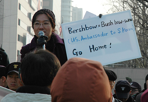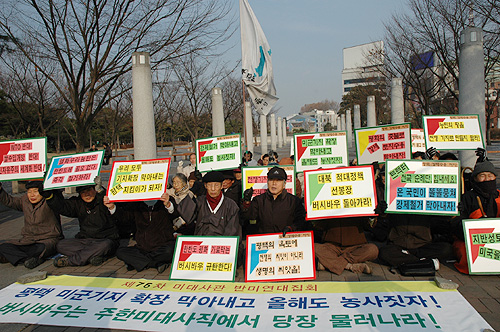 Áýȸ¿¡¼´Â ¾Æ½Ã¾Æ °øµ¿Çൿ(AWC) Çѱ¹À§¿øÈ¸ÀÇ Ç㿵±¸ ´ëÇ¥°¡ Áö±Ýµµ È«Äá¿¡¼ ÁøÇàµÇ°í ÀÖ´Â "WTO ¹Ý´ë ¼¼°èȹݴë ÅõÀï"¿¡ ´ëÇÑ º¸°í¸¦ ÇÏ¿´´Ù. Ç㿵±¸ ´ëÇ¥´Â "¹Ì±¹Àº °æÁ¦·Â°ú ±º»ç·ÂÀ¸·Î Àü¼¼°è ¹ÎÁߵ鿡°Ô ¼¼°èȸ¦ °¿äÇϰí ÀÖ´Ù"¸ç "Àü¼¼°è¿¡ ÀÖ´Â 1000°³ÀÇ ¹Ì±º±âÁö°¡ ¹Ù·Î ¹Ì±¹ÀÇ ±º»çÀû ħ·«À» ÀǹÌÇÏ´Â °ÍÀÌ´Ù. ÆòÅà ¹Ì±º±âÁö È®ÀåÀ» ¸·¾Æ³»´Â ÅõÀï¿¡ ³ëµ¿ÀÚµéÀÌ ³ª¼¾ß ÇÏ´Â ÀÌÀ¯µµ ¹Ù·Î °Å±â¿¡ ÀÖ´Ù"¸ç '¹Ì±º±âÁö È®Àå¹Ý´ë ³ëµ¿ÀÚ ÃÑÆÄ¾÷'À» Á¦±âÇϱ⵵ ÇÏ¿´´Ù.