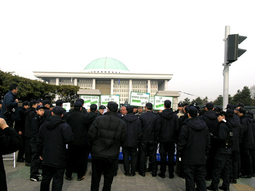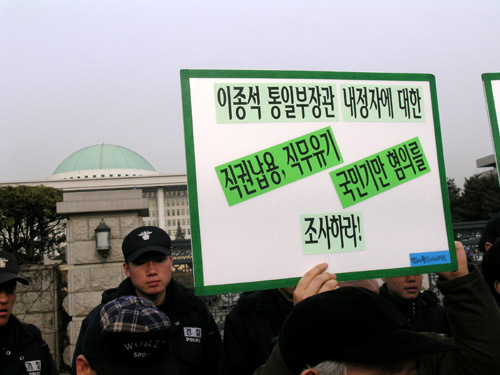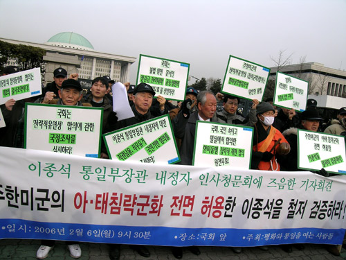 ¹ü¹Î·Ã ³²Ãøº»ºÎ, ½Çõ¿¬´ë, ÆòÅë»ç, ÅëÀϱ¤ÀåÀÇ ´ëÇ¥µé°ú ȸ¿øµéÀº ¿ÀÀü 9½Ã20ºÐ ±¹È¸Á¤¹® ¾Õ¿¡¼ ±ä±Þ ±âÀÚȸ°ßÀ» ¿°í ¹ÎÁ·ÀÇ ¿î¸íÀ» ÆÈ¾Æ ³Ñ±ä ÀÌÁ¾¼® ³»Á¤ÀÚ¸¦ ±ÔźÇß´Ù. ±âÀÚȸ°ßÀÌ ½ÃÀÛµÇÀÚ ¸¶ÀÚ ¿µµîÆ÷ °æÂû¼ÃøÀº Àü°æµé·Î ±âÀÚȸ°ßÀåÀ» 4¹æÀ¸·Î °íÂøÇÏ°í ±âÀÚµéÀÇ ÃâÀÔ¸¶Àú ÀúÁöÇÏ´Â µî ¹Î°¨ÇÑ ¹ÝÀÀÀ» º¸¿´À¸¸ç Âü°¡ÀÚµéÀÇ Ç×ÀǸ¦ ¹Þ¾Ò´Ù. ÀÌ¿¡ ´ëÇØ ±âÀÚȸ°ß Âü°¡ÀÚµéÀº ÁÖÇѹ̱ºÀÇ Àü·«Àû À¯¿¬¼º(¾ÆÅ ħ·«±ºÈ)ÇÕÀÇ¿¡ ´ëÇÑ Ã¶ÀúÇÑ °ËÁõ°ú Ã¥ÀÓÀÚ Ã³¹úÀ» ¿ä±¸Çß´Ù. ¶ÇÇÑ Ã»¿Í´ë°¡ ÀÌÁ¾¼®ÀϺ´ ±¸Çϱ⿡ ³ª¼¸ç ¾ð·Ð, Ç¥ÇöÀÇ ÀÚÀ¯¸¶Àú ¹¬»ìÇϰí ÀÖ´Ù¸ç, ¹ÎÁ·ÀÇ ¿î¸íÀÌ °É¸° ÁÖÇѹ̱ºÀÇ ¾ÆÅ ħ·«±ºÈ´Â ¹Ð½Ç¿¡¼ Çù»óÇØ³õ°í À̸¦ Ç×ÀÇÇÏ´Â ±âÀÚȸ°ßÀ» ¹æÇØÇÏ´Â °ÍÀ» Ç×ÀÇÇß´Ù.