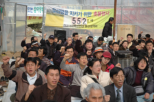 ¾îÁ¦ ´ëÃßÃʱ³¸¦ °Å»ÇÏ·Á´Â °æÂûº´·ÂÀÌ Çб³¿¡ ÁøÀÔÇÏ·Á ÇÏÀÚ ¸Ç ¾Õ¿¡¼ "³ª Á×ÀÌ°í »©¾Ñ¾Æ°¡¶ó"°í ¿ïºÎ¢À¸¸ç ¸·¾Æ³ª¼¹´ø ¹ÚÁ¾¸í ÇҾƹöÁö´Â "¹Ì±º±âÁö È®ÀåÀ» ÀúÁöÇÏ´Â °ÍÀÌ °ð ¾Ö±¹ÀÇ ±æÀÎ °Í °°´Ù"¸ç "¿ì¸® ÈûÀ» ÇÕÃÄ ²À ½Â¸®ÇÏÀÚ"°í °£ÀýÈ÷ ´çºÎÇß½À´Ï´Ù. °áÀÇ´ëȸ¿¡ Âü°¡ÇÑ Áֹεé°ú ÁöÅ´À̵éÀº ¾îÁ¦ÀÇ ÅõÀï¿¡ ´ëÇÑ Ä¡ÇÏ¿Í " ´Ü ÇÑÆòµµ ³»ÁÙ¼ö ¾ø´Ù"´Â °¢¿À¸¦ »õ·Ó°Ô ´ÙÁö¸é¼ ¿ÀÀü °áÀÇ´ëȸ¸¦ ¸¶ÃƽÀ´Ï´Ù.