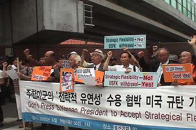 °Á¤±¸ ÆòÈÅëÀÏ¿¬±¸¼Ò ¼ÒÀåÀº ¹Ì±¹ÀÌ °¿äÇÏ´Â Àü·«Àû À¯¿¬¼ºÀº ¿ì¸®¹ÎÁ·À» ÆÄ¸ê·Î ¸ô°í °¥ À§ÇèÇÑ °ÍÀ̱⿡ Àý´ë ¼ö¿ëÇØ¼´Â ¾È µÇ´Â °ÍÀ̶ó¸ç ÀÌ¹Ì ³²ÇÑ ±º»ç·Â¸¸À¸·Îµµ ºÏÀ» ¾ÐµµÇÏ´Â »óȲÀ̱⠶§¹®¿¡ ÁÖÇѹ̱º ö¼ö´Â ´õ ÀÌ»ó ¿ì¸®¸¦ Çù¹ÚÇÏ´Â ¹«±â°¡ µÉ ¼ö ¾ø´Ù°í ÁÖÀåÇÏ°í ´çÀå ÁÖÇѹ̱ºÀ» ö¼öÇ϶ó°í ¿ä±¸Çß´Ù.
