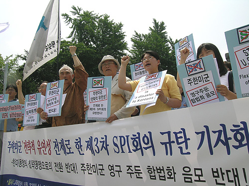 ÆòÅë»ç ¹Ì±º¹®Á¦ÆÀ ¿ÀÇý¶õ ±¹ÀåÀº " ³²°ú ºÏÀÇ ÈÇØ¿Í Çù·ÂÀÇ ±â¿îÀÌ ³ô¾ÆÁö°í, Çѹݵµ ÆòÈüÁ¦ ¼ö¸³ÀÇ ¹ÎÁ·Àû °úÁ¦°¡ ³ô¾ÆÁö°í Àִµ¥, ¹ÝºÏ ´ë°áÀǽĿ¡ Âîµç ±¹¹æºÎ´Â ºÏÀ» »ó´ë·Î ¹Ì±¹ÀÇ ÀüÀï½Ã³ª¸®¿À¿¡ ÇÕÀÇÇØÁÖ°í, Çѱ¹±ºÀ» ¹Ì±¹ÀÇ Ä§·«ÀüÀïÀÇ Èñ»ý¾çÀ¸·Î ¸¸µé·Á°í ÇÑ´Ù"¸ç "±¹¹æºÎÀÇ ³ÃÀüÀû ¾Èº¸°üÀº ³ë¹«ÇöÁ¤ºÎÀÇ ºÏÇÙ¹®Á¦ÀÇ ÆòÈÀû ÇØ°á°ú Æòȹø¿µ Á¤Ã¥°úµµ °Å¸®°¡ ¸Ö°í, ÀÚÁÖ¿Í ÆòÈ ÅëÀÏÀ» ¿°¿øÇÏ´Â ¿ì¸®¹ÎÁ·ÀÇ ÀÌÀͰúµµ ±Ùº»ÀûÀ¸·Î ¹èÄ¡µÇ´Â °ÍÀÌ´Ù"¸ç SPI ȸÀÇÀÇ Áß´ÜÀ» ¿ä±¸ÇÏ¿´´Ù.
