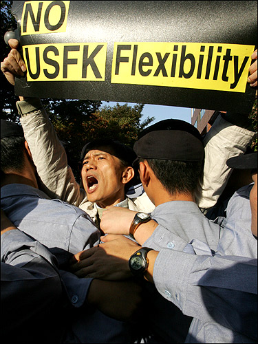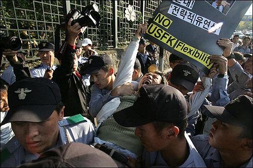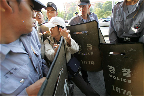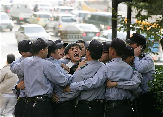 ¡â 21ÀÏ ¿ÀÈÄ 3½Ã ¿Ü±³Åë»óºÎ Á¤¹® ¾Õ, °æÂûÀº Áýȸ¸¦ ¸¶Ä¡°í ÇØ»êÇÏ·Á´Â Âü°¡ÀÚµéÀ» °íÂøÇÏ¸ç Æø·ÂÇà»ç. ºÎ¼Áø ÇÇÄϵé