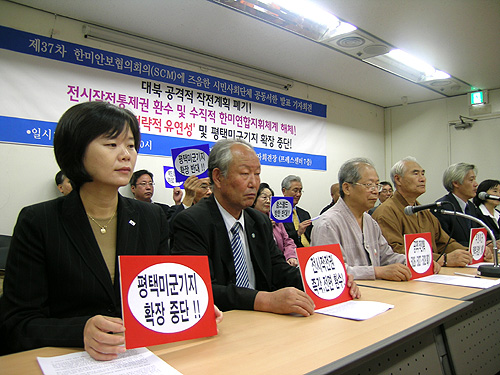 ¡â19ÀÏ ¿ÀÀü 10½Ã ÇÁ·¹½º¼¾ÅÍ 7Ãþ¿¡¼ 37Â÷ Çѹ̿¬·Ê¾Èº¸ÇùÀÇȸ(SCM)¿¡ ÁîÀ½ÇÏ¿© À±±¤¿õ ±¹¹æºÎÀå°ü¿¡°Ô º¸³»´Â ½Ã¹Î»çȸ´Üü °øµ¿ ¼ÇÑÀ» ¹ßÇ¥ÇÏ´Â ±âÀÚȸ°ßÀÌ ¿·È´Ù.