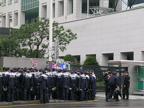 ¡â 21ÀÏ ¿ÀÈÄ 1½Ã ¿Ü±³Åë»óºÎ Á¤¹® ¾Õ, ÇÕ¹ý Áýȸ¿¡µµ ºÒ±¸ÇÏ°í °æÂûµéÀº ÁýȸÂü°¡ÀÚµéÀ» °íÂø½Ã۰í Áýȸ¸¦ ¹æÇØÇÏ¿´´Ù.