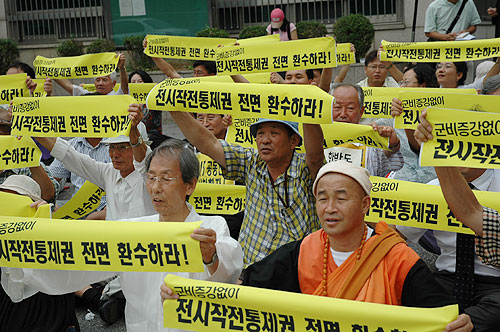 ù ¿¬¼³¿¡ ³ª¼± ÆòÈÀçÇⱺÀÎȸ »óÀÓ´ëÇ¥ Ç¥¸í·Ä ¿¹ºñ¿ª À屺Àº "ÀÛÀüÅëÁ¦±Ç ȯ¼ö´Â ÁֱǻçÇ×Àε¥µµ ºÒ±¸Çϰí Á¤½Å³ª°£ »ç¶÷µéÀÌ À̰ÍÀ» ¹Ý´ëÇϰí ÀÖ´Ù"¸é¼ "´çÀå ³»ÀÏÀÌ¶óµµ ÀÛÀüÅëÁ¦±ÇÀº ȯ¼öµÇ¾î¾ß Çϸç, ±×·Î ÀÎÇØ ¹ß»ýÇÏ´Â ¹®Á¦µéÀº ±× ¶§ °¡¼ ÇØ°áÇØµµ ´ÊÁö ¾Ê´Ù. ÀÛÀü±Ç ȯ¼ö ¾øÀÌ ÀÚ±¸±¹¹æÀº ¾î¸²¾ø´Ù"¸ç ÀÛÀüÅëÁ¦±Ç ȯ¼ö¿¡ ´ëÇÑ ±»Àº ÀÇÁö¸¦ º¸¿©ÁÖ¾ú½À´Ï´Ù.