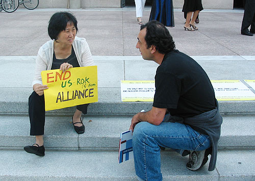 ÆòȿÀ» ÇÏ´Â ¹Ì±¹ÀεéÀÌ ÀÌ ³¯ ¸¶Ä§ ÀڽŵéÀÇ Çà»çÀ» ¸¶Ä¡°í ȸÇÕÀ» Çϰí ÀÖ´Ù°¡ ÅõÀï´ÜÀÇ ½ÃÀ§¸¦ º¸°í °Ý·ÁÇÏ¿´½À´Ï´Ù. ÇÑ ¹Ì±¹ÀÎ ÆòÈȰµ¿°¡´Â "Çѹ̵¿¸ÍÀº Çѱ¹¹Î¿¡°Ô ³Ê¹« Å« Èñ»ýÀ» °¿äÇØ¿Ô´Ù. ÀÌÁ¦ Çѹ̵¿¸ÍÀ» ÇØ¼ÒÇϰí Çѱ¹±¹¹Î°ú ¹Ì±¹±¹¹Î »çÀÌ¿¡ ÁøÁ¤ÇÑ ¿ìÀǸ¦ ¸¸µé¾î°¡¾ß ÇÑ´Ù"´Â ¹æ¹ÌÅõÀï´ÜÀÇ ÁÖÀå¿¡ ´ëÇØ "¹Ì±¹ÀÎÀ¸·Î¼ Çѱ¹ »ç¶÷¿¡°Ô Á¤¸» ¹Ì¾ÈÇÏ´Ù"°í ´äÇϱ⵵ ÇÏ¿´½À´Ï´Ù. ¿À°¡´Â ¸¹Àº ½Ã¹Îµé, ÀÇ¿øµé°ú ÀÇȸ °ü·Ã ÀλçµéÀÌ ÆòÅë»çÀÇ ÁÖÀåÀÌ ´ã±ä Æîħ¸·¿¡ Å« °ü½ÉÀ» Ç¥ÇÏ¿´½À´Ï´Ù. Çѱ¹¿¡¼´Â SBS ƯÆÄ¿øÀÌ ÃëÀ縦 ³ª¿Ô½À´Ï´Ù.