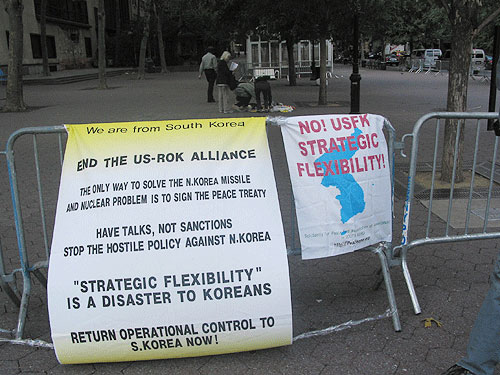 ¡â ÇÔ¸Ó½¶Ã÷ ±¤Àå¿¡ °É¸° ÆòÅë»ç Æîħ¸·. ÃÖ¼ºÈñ ¾¾´Â ÀÛ³â NPT¶§ºÎÅÍ °£Á÷Çß´ø Æîħ¸·À» ¹æ¹ÌÅõÀï´Ü¿¡°Ô ³»¾î³õÀ¸¸ç "À̰͵µ °ÉÀÚ"°í Çß´Ù. "ÀÌ°Ô ¿Ü±¹Àε鿡°Ô´Â ÀÇ¹Ì Àü´Þ Çϱ⿡ ÁÁ¾Æ¿ä."