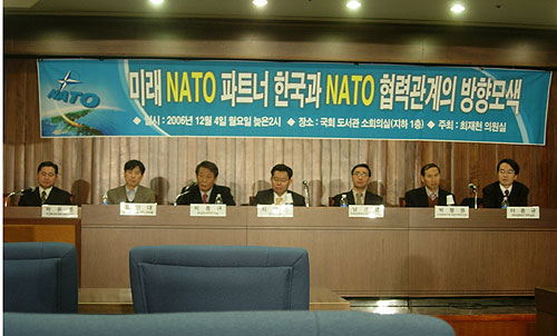 ÀÌ·¯ÇÑ Á¤¼¼¼Ó¿¡¼ ±¹È¸ÀÇ¿ø ÃÖÀçõ ÀÇ¿ø½Ç ÁÖÃÖ·Î '¹Ì·¡ NATO ÆÄÆ®³Ê Çѱ¹°ú NATO Çù·Â°ü°èÀÇ ¹æÇâ ¸ð»ö'À̶ó´Â Åä·Ðȸ°¡ ¿·È°í, ÆòÅë»ç´Â Çѱ¹À» ºñ·ÔÇÑ ¾Æ½Ã¾Æ µ¿¸Í±¹µéÀ» NATO·Î ²ø¾îµéÀÌ·Á´Â ¹Ì±¹ÀÇ Àǵµµµ¸¦ ¹àÇô³»°í GP Âü¿©¸¦ °ËÅäÇÏ´Â Á¤ºÎÀÇ ´ëÀÀ¹æ¾ÈÀ» ºñÆÇÇÏ¸ç ÆòÅë»ç ºÎ¼³ ÆòÈÅëÀÏ¿¬±¸¼ÒÀÇ °í¿µ´ë »óÀÓ¿¬±¸À§¿øÀÌ "µ¿ºÏ¾Æ ½Å³ÃÀü ºÒ·¯¿À°í Çѹݵµ ÆòÈ¿Í ÅëÀÏ¿¡ ¿ªÇàÇÒ Çѱ¹ÀÇ ³ªÅä ±Û·Î¹ú ÆÄÆ®³Ê½Ê Âü¿©"¶ó´Â Á¦¸ñÀÇ ¹ßÁ¦¹®À» ¹ßÇ¥ÇÏ¿´´Ù.