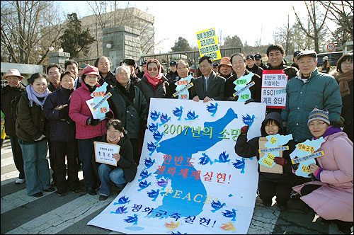 1¿ù 30ÀÏ 2007³â ù ÆòȱºÃàÁýȸ(64Â÷)°¡ ÆòÅë»ç ÁÖÃÖ·Î ±¹¹æºÎ ¾Õ¿¡¼ ¿·È´Ù.