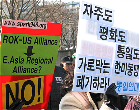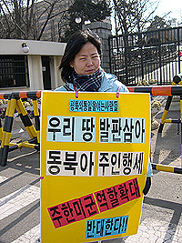 Âü¼®ÀÚµéÀº ÆòÈÅëÀÏ¿¬±¸¼Ò °Á¤±¸ ¼ÒÀåÀÌ ³¶µ¶ÇÑ ¡°Çѹݵµ¸¦ ¹Ì±¹ÀÇ Ä§·«ÀüÀïÀÇ Ãâ°Ý ±âÁö·Î ¸¸µé·Á´Â ÁÖÇѹ̱ºÀÇ ¿ªÇÒÈ®´ë¿Í Çѹ̵¿¸ÍÀÇ Áö¿ªµ¿¸ÍÈ ±âµµ¸¦ ±âÇÊÄÚ ÀúÁöÇÏÀÚ!¡±´Â ³»¿ëÀÇ °áÀǹ®À» ÅëÇØ ±¹¹æºÎ°¡ ¹Ì±¹ÀÇ ºÎ´çÇÑ ¿ä±¸¸¦ ´ÜÈ£È÷ °ÅºÎÇÒ °ÍÀ» ¿ä±¸ÇÏ¿´´Ù