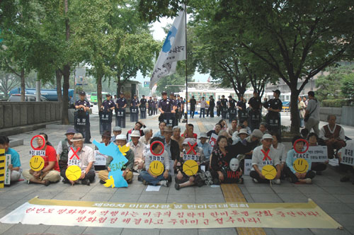 ¡â 11ÀÏ ¿ÀÈÄ 12½Ã ±¤È¹® KT ¾Õ¿¡¼, Çѹݵµ ÆòÈüÁ¦ ¿ªÇàÇÏ´Â ¹Ì±¹ÀÇ Ä§·«Àû Çѹ̵¿¸Í °È Áß´ÜÇÏ°í ÆòÈÇùÁ¤ ü°áÇϰí ÁÖÇѹ̱º ö¼öÇÒ °ÍÀ» ¿ä±¸ÇÏ´Â Á¦96Â÷ ¹Ì´ë»ç°ü ¾Õ ¹Ý¹Ì¿¬´ëÁýȸ°¡ ¿·È½À´Ï´Ù.