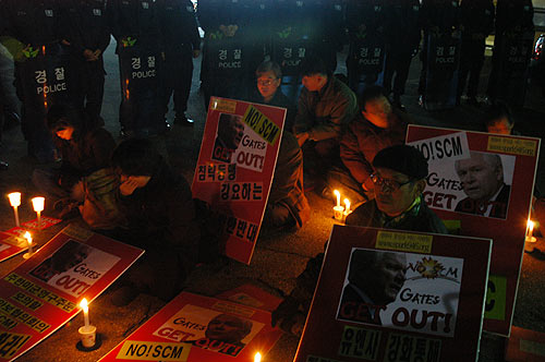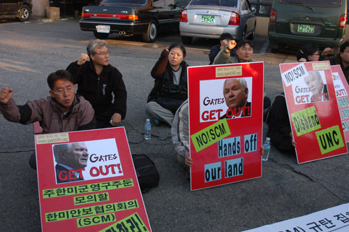 ¿ÀÈÄ4½Ã, ½Å¶óÈ£ÅÚ ¾Õ¿¡¼´Â 39Â÷ Çѹ̾Ⱥ¸¿¬·ÊÇùÀÇȸÀÇ(SCM) ±Ôź°ú ·ÓÆ® °ÔÀÌÃ÷ ¹Ì±¹¹æÀå°ü ¹æÇÑÀ» ¹Ý´ëÇÏ¸ç ÆòÅë»ç ȸ¿øµéÀÌ ÈûÂù ±¸È£¸¦ ¿ÜÄ¡¸ç ¿¬Á½ÃÀ§¸¦ Çϰí ÀÖ½À´Ï´Ù. °æÂûµéÀº Áö³ª°¡´Â ½Ã¹ÎµéÀÌ º¸Áö ¸øÇϵµ·Ï Âü°¡ÀÚµéÀ» µÑ·¯½Î°í ÀÖ½À´Ï´Ù.