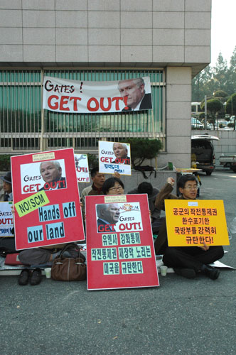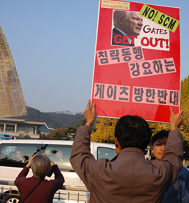 ¡ã±¹¹æºÎ Á¤¹®À» ÇâÇØ "Gates GET OUT!" Çö¼ö¸·À» ³ôÀÌ µé°í Ç×ÀÇ ÇൿÀ» Çß½À´Ï´Ù.