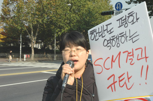 ¡â ¿ÀÀü 10½Ã ±¹¹æºÎ ¹Î¿ø½Ç ¾Õ¿¡¼, ħ·«Àû Çѹ̵¿¸Í °ÈÇÏ´Â Çѹ̾Ⱥ¸¿¬·ÊÇùÀÇȸÀÇ(SCM) ±Ôź ³ó¼ºÅõÀïÀÌ ÆòÅë»ç¸¦ ºñ·ÔÇÑ ½Ã¹Î»çȸ´Üü °øµ¿ÁÖÃÖ·Î ¿·È½À´Ï´Ù.