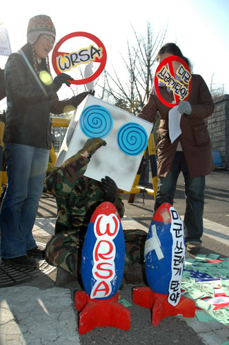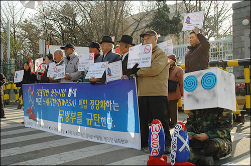 11¿ù 22ÀÏ ¿ÀÀü 11½Ã, ±¹¹æºÎ Á¤¹®¾Õ¿¡¼ ±â¸¸ÀûÀÎ ¼º´É½ÃÇèÀ» ÅëÇØ ¹Ì±º ¾²·¹±âź¾à(WRSA) ¸ÅÀÔÀ» Á¤´çÈÇÏ·Á´Â ±¹¹æºÎ ±Ôź ±âÀÚȸ°ßÀÌ ÀÖ¾ú½À´Ï´Ù.