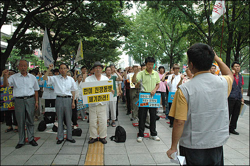 ¡â ¾ÆÄ§ºÎÅÍ ³»¸° ºñ·Î ÇÑ¿©¸§ÀÇ ¶ß°Å¿î ¿±â°¡ ¾î´ÀÁ¤µµ °¡½Å 12ÀÏ Á¤¿À, ¹Ì´ë»ç°üÀÌ º¸ÀÌ´Â ±¤È¹® KT ºôµù ¾Õ¿¡¼ 107Â÷ ¹Ý¹Ì¿¬´ëÁýȸ°¡ ¿·È½À´Ï´Ù.