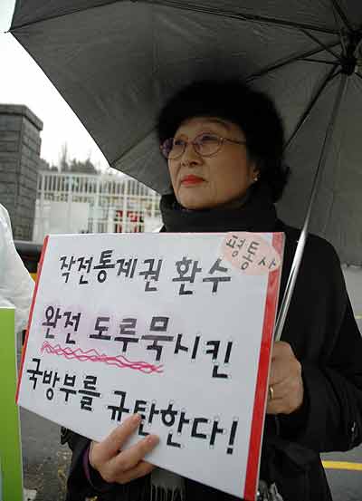 ¿ÀÇý¶õ ÆÀÀåÀº ±¹¹æºÎÀÇ Àü½ÃÀÛÀüÅëÁ¦±Ç Àüȯ ÃßÁø »óȲ¿¡ ´ëÇØ ¡°ÇѸ¶µð·Î Àü Á¦´ë, Àü ±â´É¿¡ °ÉÃÄ ¹Ì±ºÀÌ ¿¬ÇÕÀÛÀüÀ» ÁÖµµÇϵµ·Ï µÇ¾î ÀÖ´Ù¡±°í ÁöÀûÇß½À´Ï´Ù. °ø±º¿¡ ´ëÇÑ ÀÛÀüÅëÁ¦±Ç ȯ¼ö´Â ¿ÏÀüÈ÷ Æ÷±âÇß°í Áö»ó±º¿¡ ´ëÇÑ ÀÛÀüÅëÁ¦±Çµµ ¿ÂÀüÈ÷ ȯ¼öµÇ´Â °ÍÀÌ ¾Æ´Ï¶ó°í ÁöÀûÇß½À´Ï´Ù. Àü·«°ú ÀÛÀüÀû Â÷¿øÀº ¹°·ÐÀÌ°í ±º´Ü, »ç´Ü µîÀÇ Àü¼úÁ¦´ë Â÷¿ø¿¡¼µµ ÀÛÀü°èȹ¿¡ µû¶ó ÁöÈÖ°ü°è¸¦ ¼³Á¤Çϵµ·Ï Çѹ̰¡ ÇÕÀÇÇß´Ù´Â °ÍÀÔ´Ï´Ù. °á±¹ Àü·«, ÀÛÀü, Àü¼úÀû Â÷¿øÀÇ Á¦´ëº° ÁöÈÖü°è¿¡¼ ÀÛÀüÅëÁ¦±Ç ȯ¼ö¶ó´Â ¸íºÐ¿¡ °É¸Â°Ô Çѱ¹±ºÀÌ È¯¼öÇÏ´Â ÀÛÀüÅëÁ¦±ÇÀº ¾ø´Ù´Â °ÍÀÔ´Ï´Ù.