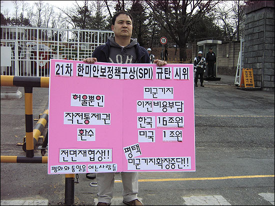 Áß´ÜÇ϶ó´Â ¿ä±¸¸¦ °¡Áö°í ±¹¹æºÎ ¾Õ¿¡¼ 1ÀνÃÀ§¸¦ ÁøÇàÇÏ¿´½À´Ï´Ù.