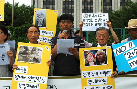ÀÌ¿¡ ÆòÅë»ç´Â ¿ÀÈÄ 1½Ã ÀüÀï±â³ä°ü ¾Õ ÇÇÄÏÆÃ , ¿ÀÈÄ 1½Ã30ºÐ Á¤ºÎÁ¾ÇÕû»ç¾Õ ±âÀÚȸ°ß, ¿ÀÈÄ 4½Ã ¿Ü±³Åë»óºÎ ¾Õ ÇÇÄÏÆÃ µî ¡°Ä§·«Àû Çѹ̵¿¸Í ¿µ±¸ÈÇÏ´Â ÇÑ¡¤¹Ì ¿Ü±³¡¤±¹¹æÀå°üȸÀÇ ±ÔźÇÑ´Ù!¡± ´Â ³»¿ëÀ¸·Î 21ÀÏ ½Çõ Ȱµ¿À» ÁøÇàÇÏ¿´½À´Ï´Ù.