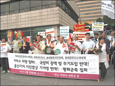 29ÀÏ ³· 12½Ã ±¹¹æºÎ ¹Î¿ø½Ç ¾Õ¿¡¼ 'À̶óÅ© ÆÄº´ öȸ! ±¹¹æºñ Áõ¾× ¹× ¹«±âµµÀÔ ¹Ý´ë! ¿ë»ê±âÁö ÀÌÀüÇù»ó °¡¼¸í ¹Ý´ë!'ÁÖÁ¦·Î 'ÆòÅë»ç, ÆòÈ³×Æ®¿öÅ©, ÆòÈÅëÀϽùο¬´ë, Æòȸ¦¸¸µå´Â¿©¼ºÈ¸'µî ÆòÈ´ÜüµéÀÌ ÇÔ²² 37Â÷ ±¹¹æºÎ ¾Õ ÆòȱºÃà Áýȸ¸¦ ÁøÇàÇÏ¿´½À´Ï´Ù.