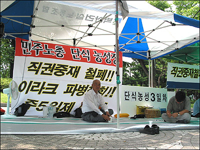 ÆòÅë»ç´Â ¾îÁ¦(21ÀÏ), ¹ÎÁֳ뵿´çÀÌ Áö³ 20ÀϺÎÅÍ ±¤È¹® ¿¸°½Ã¹Î°ø¿ø¿¡¼ Àü°³Çϰí ÀÖ´Â À̶óÅ© ÆÄº´ öȸ Ã˱¸ ³ë¼÷ ¹ã»ù ³ó¼ºÀåÀ» ã¾Æ ¿¬´ëÀÇ ¶æÀ» ÀüÇÏ°í ³ó¼º ÁöÁö Æîħ¸·À» ³ó¼ºÀå ÁÖº¯¿¡ °É¾ú½À´Ï´Ù. ÆòÅë»ç´Â ¹ÎÁֳ뵿´çÀ» ºñ·ÔÇÑ À̶óÅ© ÆÄº´ öȸ¸¦ À§ÇØ ÅõÀïÇÏ´Â ¸ðµç ºÐµé°ú ´Ã ÇÔ²² ÇϰڽÀ´Ï´Ù.