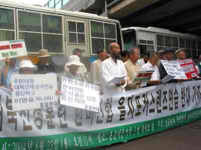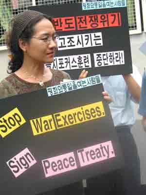 Âü°¡ÀÚµéÀº ¹Ì±ºÀÌ Çѹݵµ¿¡ ¹èÄ¡µÇ°í ÀÖ´Â ÃÖ÷´Ü ¹«±âµµÀÔ Áߴܰú Áï°¢ ö°Å¸¦ ¿ä±¸ÇÏ¿´´Ù. ¶ÇÇÑ "¿ì¸®¿¡°Ô ÆòÈ´Â °ð »ý¸íÀÌ´Ù"¸ç "Á¦2ÀÇ Çѹݵµ ÀüÀïÀ» ºÒ·¯¿Ã ¹Ì±¹ÀÇ ´ëºÏÀüÀïÃ¥µ¿ÀÇ ½ÇÀüÈÆ·ÃÀÎ À»ÁöÆ÷Ä¿½º·»Áî ±º»çÈÆ·ÃÀ» Áï°¢ Áß´ÜÇÒ °Í"À» Ã˱¸ÇÏ¿´´Ù.