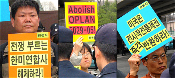 ¡®µ¥ÇÁÄÜ 3¡¯ÀÌ ¹ß·ÉµÇ¸é ÀÛÀüÅëÁ¦±ÇÀº ÀÚµ¿À¸·Î ¹Ì±¹ ÂÊÀ¸·Î ³Ñ¾î°£´Ù. ±×·¸°Ô µÇ¸é ¹Ì±ºÀÌ ´ëºÏ °ø°ÝÀ» °¨ÇàÇØµµ ¿ì¸® ±¹¹Î°ú Á¤ºÎ´Â ¾Æ¹«·± ÁÖ±ÇÀû ±Ç¸®¸¦ Çà»çÇÒ ¼ö ¾ø°Ô µÈ´Ù. ÆòÅë»ç¸¦ ºñ·ÔÇÑ Âü°¡ÀÚµéÀº ÀÌ¿¡ ´ëÇØ ±Ùº»Àû ÇØ°á¹æ¹ýÀ¸·Î 'Çѹ̿¬ÇÕ»ç ÇØÃ¼¿Í Àü½ÃÀÛÀüÅëÁ¦±ÇÀÇ Áï°¢ ¹Ýȯ'À» Á¦½ÃÇß´Ù.