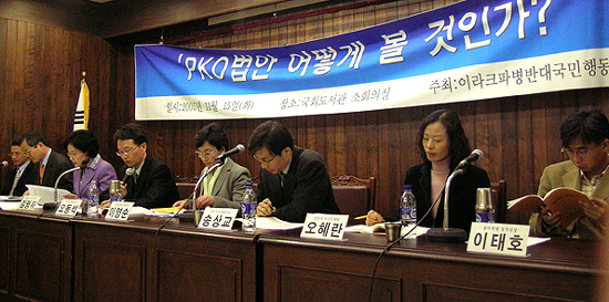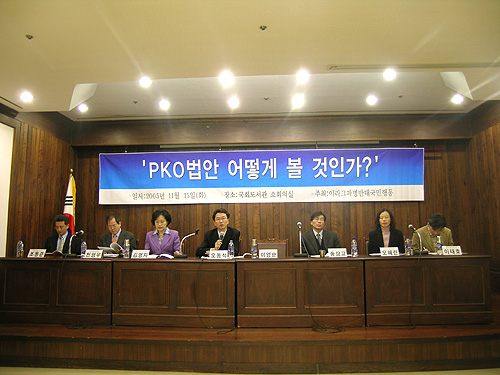 ¡ã 15ÀÏ ¿ÀÀü 10½Ã, ±¹È¸ µµ¼°ü ¼ÒȸÀǽǿ¡¼ ±è¸íÀÚ ÀÇ¿ø(¿¸° ¿ì¸®´ç)°ú ¼Û¿µ¼± ÀÇ¿ø(Çѳª¶ó´ç)ÀÌ °¢°¢ Á¦ÃâÇÑ PKO¹ý¾È¿¡ ´ëÇØ "PKO¹ý¾È ¾î¶»°Ô º¼ °ÍÀΰ¡"¶ó´Â ÁÖÁ¦·Î À̶óÅ©ÆÄº´¹Ý´ë±¹ºóÇൿ ÁÖÃÖÀÇ Åä·Ðȸ°¡ ¿·È´Ù.