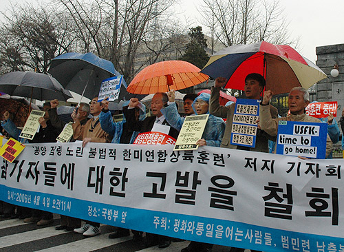 ºñ°¡ ³»¸®´Â ¿ÀÀü11½Ã, ±¹¹æºÎ ¾Õ¿¡¼± ¹ü¹Î·Ã ³²Ãøº»ºÎ, ÅëÀÏ¿¬´ë, Æòȹٶ÷, õÁÖ±³Á¤ÀDZ¸ÇöÀü±¹¿¬ÇÕ, ÆòÈ¿ÍÅëÀÏÀ»¿©´Â»ç¶÷µéÀº Áö³´Þ 30ÀÏ ¸¸¸®Æ÷ ±¹¸³°ø¿ø¿¡¼ ¿¸° Çѹ̿¬ÇÕÀü½ÃÁõ¿ø ¹× µ¶¼ö¸® ¿¬½À(RSOI&FE) Áß´Ü Ã˱¸ ±âÀÚȸ°ß°ú °ü·ÃÇÏ¿© Âü°¡ÀÚµéÀ» Àü¿ø °í¹ßÁ¶Ä¡ ÇÏ°Ú´Ù°í ±¹¹æºÎ°¡ ¹àÈù °Í¿¡ ´ëÇÏ¿© ÀÌ¿¡ ´ëÇÑ Ã¶È¸¸¦ ¿ä±¸ÇÏ´Â ±âÀÚȸ°ßÀ» °¡Á³´Ù.