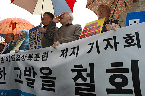Ç×ÀǼÇÑÀ» Àü´ÞÇÑ ´ëÇ¥´ÜÀÌ ³ª¿ÂÈÄ, ±âÀÚȸ°ß Âü°¡ÀÚµéÀº ±¹¹æºÎ°¡ °í¹ßÁ¶Ä¡¸¦ ÃëÇÏÇϰí, ºÒ¹ýÀûÀÎ Çѹ̿¬ÇÕ¿¬½ÀÀ» Áß´ÜÇÏ´Â ³¯±îÁö ÇÔ²² °·ÂÈ÷ ÅõÀïÇÒ °ÍÀ» ´ÙÁüÇÏ´Â ÈûÂù ÇÔ¼ºÀ» Áö¸£¸ç ±âÀÚȸ°ßÀ» ¸¶¹«¸® ÇÏ¿´´Ù.