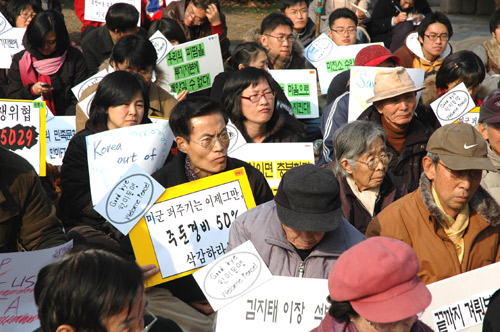 2006³âÀ» ¸¶°¨ÇÏ´Â Á¦87Â÷ ¹Ì´ë»ç°ü ¹Ý¹Ì¿¬´ëÁýȸ°¡ 12¿ù12ÀÏ ³·12½Ã ±¤È¹® ¿¸° ½Ã¹Î°ø¿ø¿¡¼ 80¿©¸íÀÇ ½Ã¹Î»çȸ´Üü ȸ¿øµéÀÌ ¸ðÀÎ °¡¿îµ¥ ¿·È´Ù.