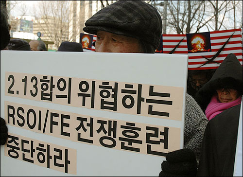 ÆòÅë»ç ¹Ì±º¹®Á¦ÆÀ ¿ÀÇý¶õÆÀÀåÀº ¡®RSOI&FE¿¬½ÀÀº ÇѹݵµÀÇ ÀüÀï »óȲÀ» ´ëºñÇØ¼ ¹Ì±ºÀÇ Áõ¿øÀü·ÂÀÇ È¿°úÀûÀÎ ÅõÀÔÀ» À§ÇÑ ÀýÂ÷ ÈÆ·Ã¡¯À̶ó°í ¹àÈ÷°í ¡®³²°ú ºÏÀÇ ±º»ç·ÂÀ» ºñ±³ÇØ º¸¸é ºÏÀÌ µµ¹ßÀ» ÇÒ °æ¿ì ³²ÀÌ À̸¦ ÃæºÐÈ÷ ¹æ¾îÇÒ ¼ö ÀÖ´Â Àü·ÂÀ» °®Ãß°í ÀÖÀ½¿¡µµ ÀÌ·¯ÇÑ ÀýÂ÷¸¦ ¿¬½ÀÇÏ´Â ÀÌÀ¯´Â °áÁ¤ÀûÀÎ ½Â¸®¸¦ À§Çؼ¡¯¶ó°í ÁÖÀåÇß´Ù. ¿ÀÇý¶õÆÀÀåÀº ¡®ÀÌ °áÁ¤ÀûÀÎ ½Â¸®°¡ ±èÁ¤ÀÏÁ¤±ÇÀÇ Á¦°Å¿Í ºÏÀÇ Ã¼Á¦ºØ±«¡¯¶ó¸ç ¡®À̸¦ À§ÇØ Çѹ̿¬ÇÕ»çÀÇ ÀÛ°è¿¡ ÀÇÇØ °øÁß, ÇØ»ó, À°»ó¿¡¼ µ¿½Ã¿¡ ºÏÀ» °ø°ÝÇÏ´Â ¼º°ÝÀÇ ¿¬½À¡¯À̶ó°í RSOI&FEÀÇ ½ÇÇàÀ» ºñÆÇÇß´Ù. ¶ÇÇÑ ¡®³²ÇÑÀÇ ±¹¹æ¹é¼¿¡µµ ºÏÀÇ µµ¹ß ½Ã Àü¸éÀü ÀÛ°è¿¡ ÀǰÅÇÑ °ø°ÝÀû ´ëºñż¼¸¦ Àû½Ã¡¯Çϰí ÀÖ´Ù¸ç ÀÌ´Â ¡®ÆòÈÀûÀÎ ÅëÀÏÀ» ¸ñÇ¥·Î Çϰí ÀÖ´Â ±¹¹æ¸ñÇ¥¿Í ¿ì¸®ÀÇ Çå¹ý¿¡µµ À§¹è¡¯µÇ´Â °ÍÀ̶ó¸ç ħ·«ÀûÀÎ RSOI&FE ¿¬½ÀÀÇ Áï°¢ Áß´ÜÀ» ¿ä±¸Çß´Ù.