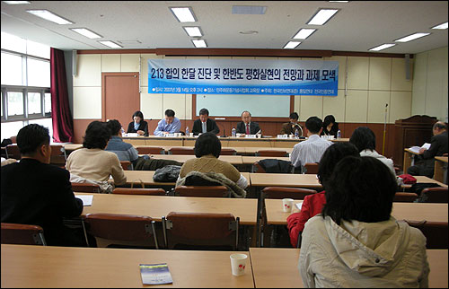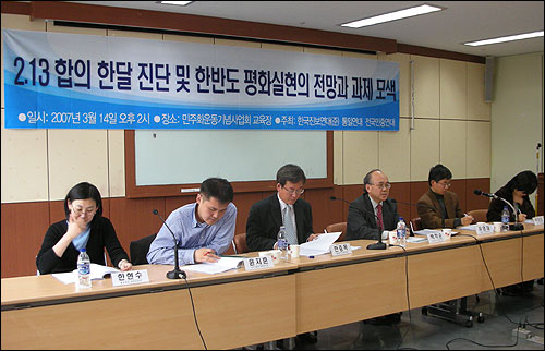 2007³â 3¿ù 24ÀÏ ¹ÎÁÖȿ ±â³ä »ç¾÷ȸ ±³À°Àå¿¡¼ Çѱ¹Áøº¸¿¬´ë(ÁØ), ÅëÀÏ¿¬´ë, Àü±¹¹ÎÁß¿¬´ë ÁÖÃÖ ¡®2.13 ÇÕÀÇ ÇÑ ´Þ Áø´Ü ¹× Çѹݵµ ÆòȽÇÇöÀÇ Àü¸Á°ú °úÁ¦ ¸ð»ö¡¯À̶ó´Â ÁÖÁ¦¸¦ °¡Áö°í Åä·Ðȸ¸¦ ÁøÇàÇÏ¿´´Ù.