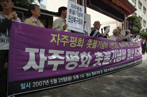 Á¾·Î±¸Ã» ¾Õ¿¡¼ ÀÚÁÖÆòÈ Ãкұâ³äºñ ¿ø»óº¹±¸¸¦ ¿ä±¸ÇÏ´Â "ÀÚÁÖÆòÈÃкұâ³äºñ ³»ÆØ°³Ä£ Á¾·Î±¸Ã» ±Ôź ±ä±Þ±âÀÚȸ°ß"ÀÌ 'È¿¼ø ¹Ì¼± ÃÐºÒ ÀÚÁÖÆòÈ »ç¾÷ȸ' ÁÖÃÖ·Î ¿·È´Ù. 1½Ã¸¦ Á¶±Ý ³Ñ°Ü, »çȸ¸¦ ¸ÃÀº Çѱ¹Áøº¸¿¬´ë(ÁØ) Á¤¿ëÁØ ¹ÝÀüÆòȱ¹ÀåÀÌ ±ä±Þ±âÀÚȸ°ßÀ» ½ÃÀÛÇÏ¿´´Ù. ù ¹øÂ°·Î ¹ß¾ð¿¡ ³ª¼± 'È¿¼ø ¹Ì¼± ÃÐºÒ ÀÚÁÖÆòÈ »ç¾÷ȸ' À̰üº¹ »óÀÓ´ëÇ¥´Â, 'ÀÌ Ãкұâ³äºñ´Â ´Ü¼øÇÑ °Ô ¾Æ´Ï¶ó ´õ ÀÌ»ó ¿ì¸® ±¹¹ÎÀÌ ¹Ì±¹ ±ºÀο¡ ÀÇÇØ Èñ»ý´çÇÏÁö ¾Ê°í ¹Ì±¹¿¡ ÁÂÁö¿ìÁö µÇÁö ¾Ê°Ú´Ù´Â °á½ÉÀÇ Ç¥½Ã'¶ó¸ç 'ÀÚÁÖÆòÈ Ãкұâ³äºñ'ÀÇ ÀÇÀǸ¦ ÁöÀûÇÏ¿´°í. µÎ ¹øÂ°·Î ¹Ì¼± ÃÐºÒ ÀÚÁÖÆòÈ »ç¾÷ȸ äÈñº´ »ç¹«Ã³ÀåÀº, 'ÀÚÁÖÆòÈ Ãкұâ³äºñ ¼ö³»ç'¸¦ º¸°íÇÏ¿´´Ù. ÀÌ¾î¼ Á¶±¹ÅëÀϹü¹ÎÁ·¿¬ÇÕ ³²Ãøº»ºÎ À̱ÔÀç ÀÇÀåÀº, '¹Ì±ºÀ» »ó´ë·Î ÇÑ ±â³äºñÀ̱⠶§¹®¿¡ ö°ÅÇÑ °Í ¾Æ´Ï°Ú´À³Ä'¸ç ¹®Á¦¸¦ Á¦±âÇÏ¿´´Ù. °æ±âºÏºÎÆòÈ¿¬´ë(ÁØ) À±ÇÑŹ ÁغñÀ§¿øÀåÀÇ ±Ôź¹ß¾ð¿¡ ÀÌ¾î ´Ù¼¸ ¹øÂ°·Î ¹ß¾ð¿¡ ³ª¼± ÆòÈ¿Í ÅëÀÏÀ» ¿©´Â »ç¶÷µé À¯¿µÀç ¹Ì±º¹®Á¦ÆÀÀåÀº, 6¿ù13ÀÏ 5ÁÖ±â ÇöÀå´ä»ç¿Í 13ÀÏ Àú³á 7½Ã ±¤È¹® ¿©Áß»ý 5ÁÖ±â Ã߸ðÃкҹ®ÈÁ¦ µîÀ» Á¦¾ÈÇÏ¿´´Ù. ÀÌ¾î¼ ³²ºÏ°øµ¿¼±¾ð½Çõ¿¬´ë ±Ç¿Àâ »óÀÓ´ëÇ¥´Â, ¼º¸í¼¸¦ ³¶µ¶ÇÏ¿´´Ù.