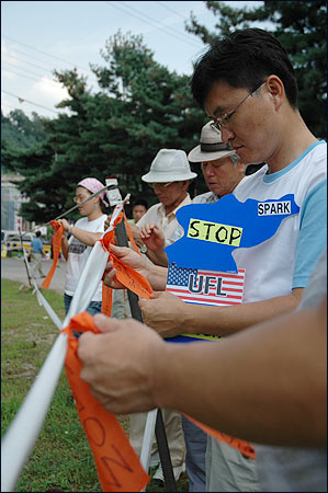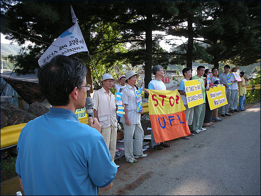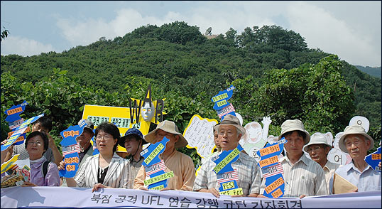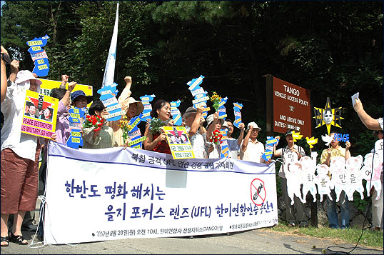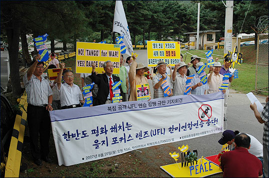 ¡â 20ÀÏ ¿ÀÀü 10½Ã, ÆòÈ¿ÍÅëÀÏÀ»¿©´Â»ç¶÷µéÀº Çѹ̿¬ÇÕ»ç ÀüÀïÁöÈÖ¼Ò(Tango) Á¤¹® ¾Õ¿¡¼ "Çѹݵµ ÆòÈ ÇØÄ¡´Â À»ÁöÆ÷Ä¿½º·»Áî(UFL) Çѹ̿¬ÇÕ¿¬½À Áß´Ü"À» ¿ä±¸ÇÏ´Â ±âÀÚȸ°ßÀ» ¹ü¹Î·Ã³²Ãøº»ºÎ¿Í °øµ¿À¸·Î ¿¾ú½À´Ï´Ù.