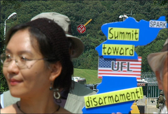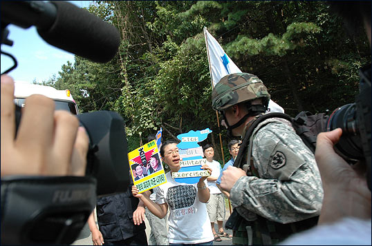 ¡â ±âÀÚȸ°ß µµÁß¿¡ Áö³ª°¡´Â ¹Ì±º¿¡°Ô "STOP! MILITARY EXERCISES"¸¦ ¿ÜÄ¡±âµµ ÇÏ¿´½À´Ï´Ù.