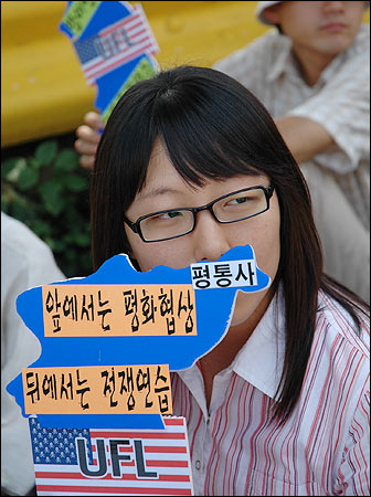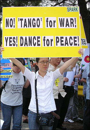 ÆòÅë»ç´Â À»ÁöÆ÷Ä¿½º·»ÁÇÕ¿¬½ÀÀÌ ½ÃÀÛÇÑ 20ÀϺÎÅÍ 'Çѹ̿¬ÇÕ ÀüÀïÁöÈÖ¼Ò' ¾Õ¿¡¼­ ÆòÈ­¿îµ¿»ç»ó ÃÖÃÊ·Î ±âÀÚȸ°ß, ÆòÈ­Ä·ÆäÀÎ, 1ÀνÃÀ§, ½Ã¹Îµî¹Ý´ëȸ, Ãкҹ®È­Á¦ µîÀ» °³ÃÖÇϸç À»ÁöÆ÷Ä¿½º·»ÁÇÕ¿¬½ÀÀÇ ´ëºÏ °ø°ÝÀû ¼º°ÝÀ» ¹®Á¦Á¦±âÇÏ¸ç ¿¬ÇÕ¿¬½ÀÀÇ Áß´ÜÀ» Ã˱¸ÇؿԽÀ´Ï´Ù.