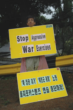 ¹Ý´ë)¡±, ¡°NO MILITARY EXERCISE(±º»ç¿¬½À ¹Ý´ë)¡± µîÀÇ ±¸È£¸¦ ¿ÜÄ¡¸é¼