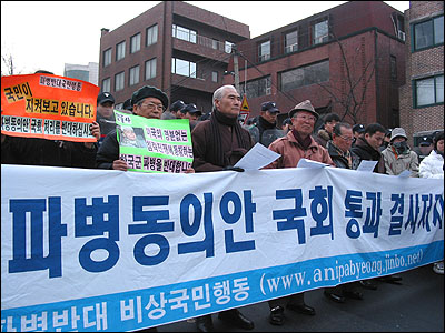 Âü°¡ÀÚµéÀº ±¹È¸°¡ ÆÄº´ °Å¼ö±â·Î Àü¶ôÇÏ´Â °Í¿¡ ´ëÇØ °·ÂÈ÷ ±ÔźÇϰí '±¹È¸´Â ÀüÅõº´ ÆÄº´À» 󸮸¦ ±×¸¸µÎ°í ±¹¹Î¿¡°Ô Ã¥ÀÓ ÀÖ´Â ¸ð½ÀÀ» º¸¿©¾ß ÇÑ´Ù'°í ÁÖÀåÇÏ¿´½À´Ï´Ù.