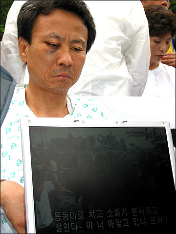 ÀÌ ³¯ ±âÀÚȸ°ß¿¡´Â Áö³ 10ÀÏ ¿ÀÀü, Çà»çÀåÀ¸·Î µé¾î°¡´ø Áß 1001 ±âµ¿´ë ¼Ò¼ÓÀÇ °æÂû¿¡°Ô ÀϹæÀûÀÎ ÆøÇàÀ» ´çÇØ ´« ºÎÀ§¸¦ Å©°Ô ´ÙÄ£ ÃÖ±Ô¿± ¹ÎÁֳ뵿´ç ÃÖ°íÀ§¿øÀÌ ÈÙü¾î¿¡ ¸öÀ» ÀÇÁöÇÑ Ã¤ Âü¼®ÇØ ´ç½ÃÀÇ Âü»óÀ» ÀüÇß´Ù.