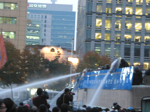 ±¤È¹® »ç°Å¸®¿¡¼´Â °æÂûÀÇ ¹Ù¸®ÄÉÀÌÆ®¿Í ¹°´ëÆ÷¿¡ ¸Â¼ °Ý·ÄÇÑ ¸ö½Î¿òÀÌ ÀÖ¾ú°í, ¹ã 11½Ã°¡ ³Ñ¾î Á¤¸®Çß´Ù.