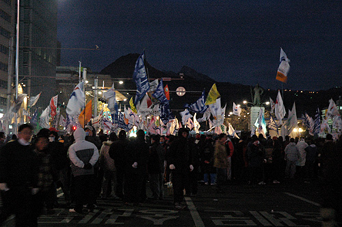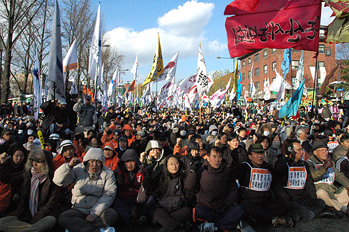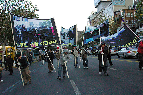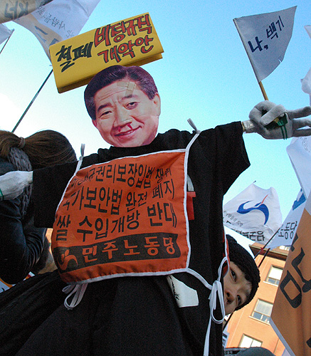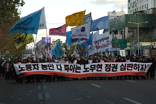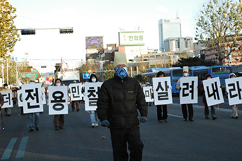 ¡ã ½Ò¼öÀÔ°³¹æ ¹Ý´ë¿Í Á¤ºÎÀÇ ºñÁ¤±Ôº¸È£¹ý¾È öȸ¸¦ ¿ä±¸Çϸç 4ÀÏ ´ëÇзο¡ ¸ðÀÎ 8õ¿©¸íÀÇ ³ëµ¿ÀÚ, ³ó¹Î µî Âü°¡ÀÚµéÀº ±¤È¹®±îÁö ÇàÁøÀ» °®°í ¹ÎÁß»ýÁ¸±ÇÀ» À§ÇùÇÏ´Â ³ë¹«ÇöÁ¤ºÎÀÇ ½ÅÀÚÀ¯ÁÖÀÇÁ¤Ã¥À» ±ÔźÇÏ¿´´Ù.
